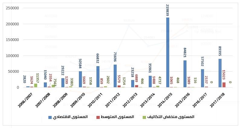 عدد الوحدات السكنية المنفذة في الحضر وفقًا للمستوى