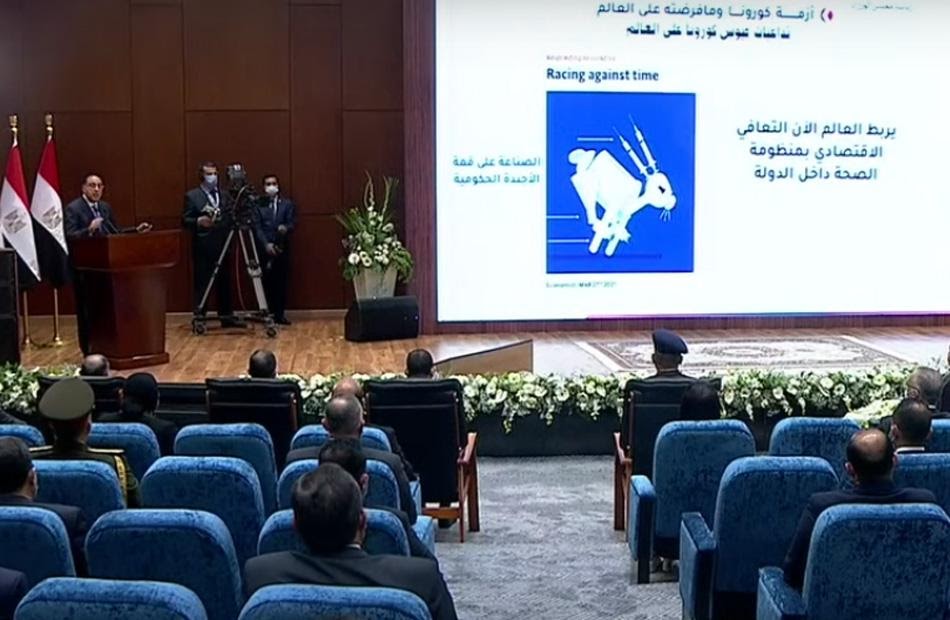 ولفت مدبولي إلى أن الدولة المصرية وضعت 7 محاور رئيسية للتعامل مع جائحة كورونا، لافتا إلى أنها اعتمدت على الإجراءات الاحترازية والتوعية الإعلامية ومواجهة الشائعات، وتعزيز البنية الطبية، والحد من التداعيات الناتجة عن هذه الجائحة.