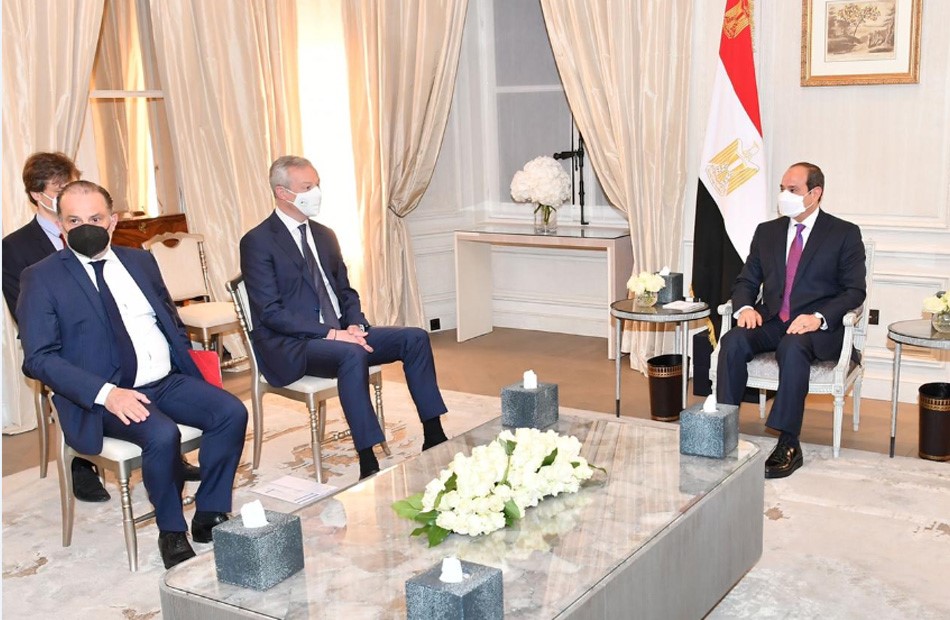 جاء ذلك خلال استقبال الرئيس عبد الفتاح السيسي، اليوم الأربعاء، برونو لومير، وزير الاقتصاد والمالية الفرنسي، وذلك بمقر إقامته في باريس.