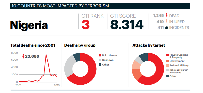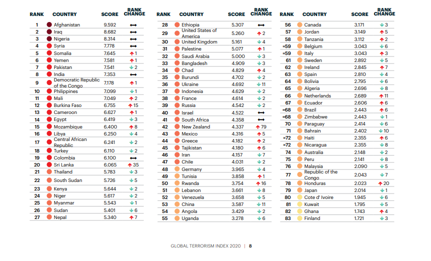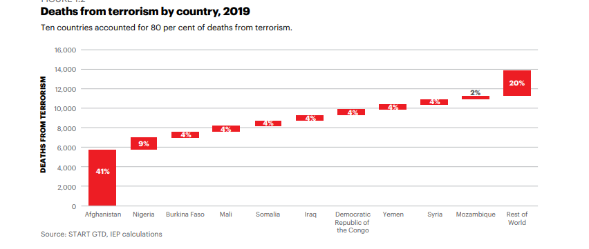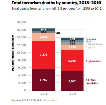 ويوضح المؤشر التالي، تصدر حركتي الشباب وبوكو حرام بجانب طالبان أكثر الحركات فتكًا في العالم، وفقًا لمؤشر الإرهاب العالمي 2020.
