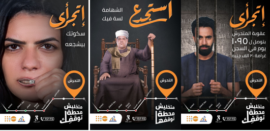 - المادة 306 مكرر أ: حيث يعاقب بالحبس مدة لا تقل عن سنتين ولا تتجاوز أربع سنوات وبغرامة لا تقل عن مائة ألف جنيه ولا تزيد على مائتي ألف جنيه أو بإحدى هاتين العقوبتين كل من تعرض للغير في مكان عام أو خاص أو مطروق بإتيان أمور أو إيحاءات أو تلميحات جنسية أو إباحية سواء بالإشارة أو بالقول أو بالفعل بأية وسيلة بما في ذلك وسائل الاتصالات السلكية أو اللاسلكية أو الكترونية أو أية وسيلة تقنية أخرى.