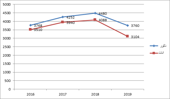 متوسط رواتب الذكور على الإناث في القطاعين العام والخاص لأعوام 2016-2017-2018