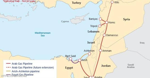 وتجدر الإشارة إلى حصول مصر على استحقاقها كمركز إقليمي لتداول الطاقة مع تعطل تدشين أي من خطوط الغاز القطرية والإيرانية التي تقاطعت في سوريا، وكانت من ضمن أسباب اندلاع الحرب فيها حسبما أعلن الرئيس السوري صراحةً في العام 2016، أن رفض دمشق لمد خط غاز ينطلق من قطر ويمر عبر أراضيها كان من بين أسباب الحرب. واستمر تعطل هذه الخطوط بالرغم من انتهاء المعارك الكبرى في سوريا لصالح الحكومة السورية.