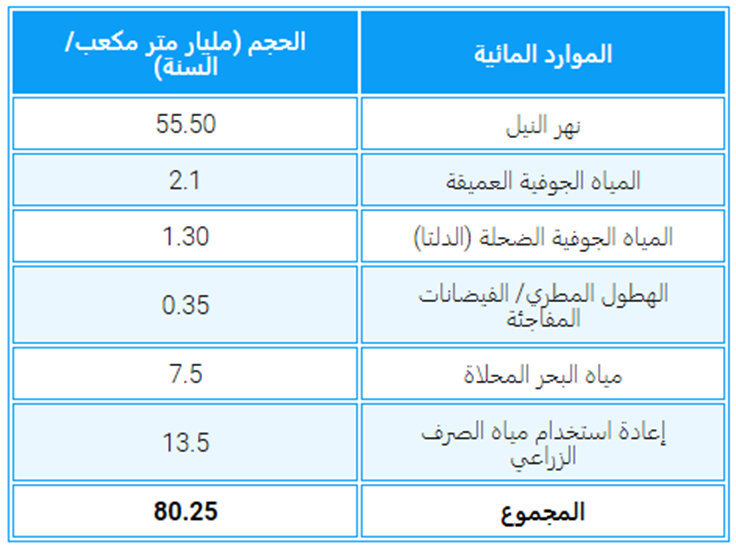 محدودية موارد المياه في ظل زيادة سكانية مضطردة، فمصر تعاني من الفقر المائي منذ عقود، نتيجة ارتفاع أعداد السكان المضطرد مع ثبات حصة مصر المائية بنهر النيل – خاصة وأن نهر النيل هو المصدر الرئيسي للمياه بمصر- منذ 1959 عند 55.5 مليار متر مكعب سنويًا، وفقا لاتفاقية تقسيم المياه عام 1959، بل إنها مهددة بالنقصان نتيجة التصرفات الأحادية لبعض الدول.