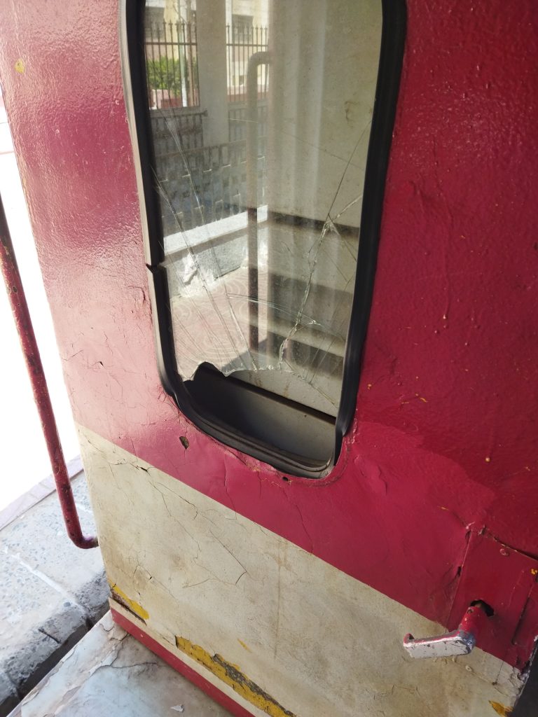 صور لزجاج العربات المهشم أو غير الموجود بنوافذ وأبواب عربات القطارات