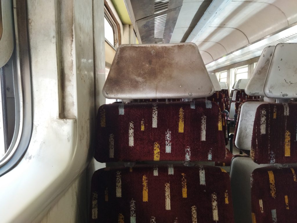 لكن وضع النظافة والصيانة العامة للعربات لم يكن بذات الجودة، حيث تلاحظ وجود اتساخات وبقع قديمة بجميع أرضيات عربات القطار، فضلًا عن وجود أتربة على حوائط ونوافذ كل عربة، وتعاني كل المقاعد من وجود اتساخات زيتية وأتربة على جسمها، علاوة على وجود أتربة متراكمة في الفواصل ما بين الكراسي وعلى المقابض الجانية، وتوجد أيضًا بعض الريشات المفقودة من منافذ تهوية السقف في كل عربة.