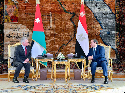 من جانبه؛ أعرب ملك الأردن عن التقدير العميق الذي يكنه الأردن لمصر على المستويين الرسمي والشعبي، واعتزازه بالروابط الممتدة التي تجمع بين البلدين الشقيقين، وكذلك مسيرة العلاقات على مستوى آلية التعاون الثلاثي مع العراق الشقيق، مؤكدًا حرص الأردن على الاستفادة من جهود مصر التنموية في كافة المجالات من خلال تبادل الخبرات والاستثمار المشترك.