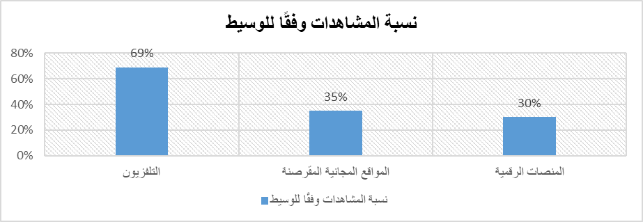 اعتماد المشاهدات على شاشات التليفزيون للمتابعة بنسبة ٦٩٪، فيما جاءت المنصات المدفوعة مثل (شاهد وWatch IT) في المرتبة الثالثة بنسبة ٣٠٪ بعد المواقع المجانية المقرصنة للمحتوى بنسبة ٣٥٪ وهو ما يقارب نسب العام الماضي مع اختلاف ضئيل يقل بنسبة لا تتعدى الـ٥٪.