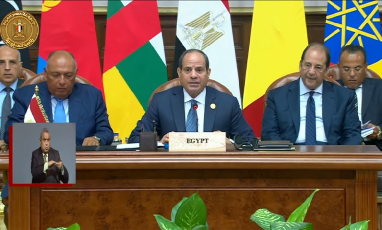 اسمحوا لي بداية، أن أرحب بكم جميعًا في مصر وأشكركم على تلبية الدعوة، لحضور هذه القمة المهمة، التي تنعقد في لحظة تاريخية فارقة من عمر السودان الشـقيق يمر خلالها هذا البلد الجار العزيز على قلوبنا بأزمة عميقة لها تداعياتها السلبية على الأمن والاستقرار في المنطقة والعالم، وعلى دول جوار السودان بشكل خاص، باعتبارها الأشد تأثرًا بالأزمة، والأكثر فهمًا ودراية بتعقيداتها مما يتعين معه على دولنا توحيد رؤيتها ومواقفها تجاه الأزمة، واتخاذ قرارات متناسقة وموحدة تسهم في حل الأزمة، بالتشاور مع أطروحات المؤسسات الإقليمية الفعالة، وعلى رأسها الاتحاد الأفريقي وجامعة الدول العربية حفاظًا على مصالح ومقدرات شعوب دول الجوار وأمن واستقرار المنطقة ككل.