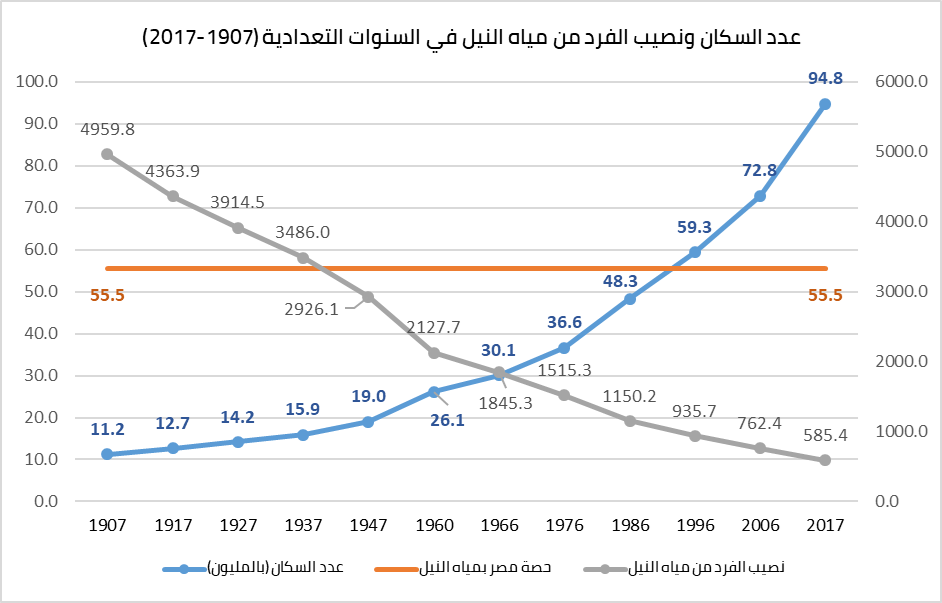 وتعتبر الدولة المصرية، وحضارتها الممتدة لألاف السنين، رائدة في حُسن إدارة المياه وتطويع مياه نهر النيل، كما استمر التطوير على مر العصور لكافة عناصر المنظومة المائية حتى يومنا هذا، حيث تعمل مصر على مواجهة تحديات المياه الناتجة عن محدودية الموارد المائية والزيادة السكانية، حيث أدت الزيادة السكانية وثبات الموارد المائية لتراجع نصيب الفرد من المياه في مصر من ٢٠٠٠ متر مكعب في الستينيات من القرن الماضي إلى ١٠٠٠ متر مكعب للفرد في التسعينيات لتصبح الآن في حدود ٥٠٠ متر مكعب للفرد.
