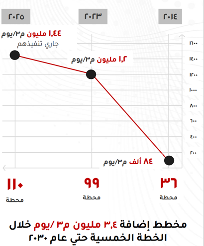 وقد اتجهت مصر إلى زيادة عدد محطات التحلية إلى أن اصبحت تملك المحطات الأكبر بالشرق الأوسط لتحلية المياه، فباتت تمتلك حاليًا نحو 100 محطة تحلية، بطاقة 1.2 مليون متر مكعب يوميًا، بحسب بيانات رسمية من وزارة الإسكان والمجتمعات العمرانية. ومن أهم محطات تحلية المياه التي تم تنفيذها: