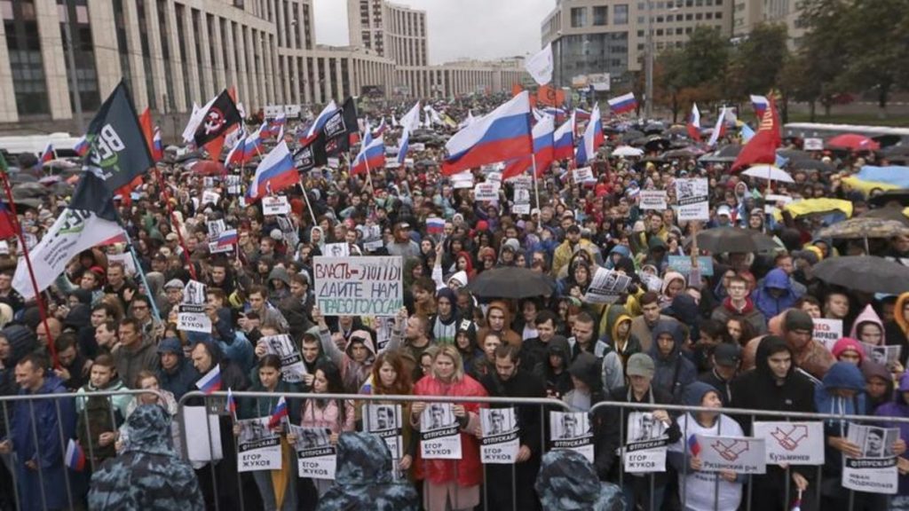 وأوضح الكاتبان أنه في سبتمبر 2018 وإثناء إجراء الانتخابات البلدية في روسيا ظهرت قوى احتجاجية مشككة في نزاهة الانتخابات، وبدا أن هناك مطالبات للتغيير. حينذاك استيقظ المجتمع المدني في روسيا من سباته وبات أكثر نشاطًا من ذي قبل.